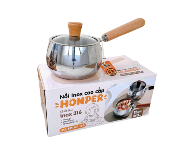 Nồi Inox Honper cao cấp HP134 (Size 12cm – Màu Nâu – Màu Be) (Quà đổi điểm)
